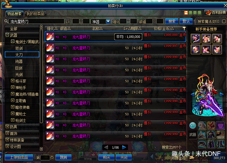 现在的DNF除了日常还是日常(俗称团本),在史诗满街走的情况下其它装备显得几乎无用,以前还能在喇叭上看到各种BUFF装,现在随着新的换装系统上线现在这些东西在喇叭上出现的次数都寥寥无几。不过去年韩服策划那边公布的幻化系统让以前被淘汰的武器焕发新生,比如60版本的巅峰武器无影剑和魔剑还有流星落,这些充满回忆的武器拿来替换现武器的外观,而这个版本也在最近更新到了国服,一些玩家仓存留着旧时武器也派上用场,但是留有旧时装备的玩家还是少数,大部分玩家现在只能依靠现刷或者拍卖行,而绝版的史诗只能靠新副本来刷!