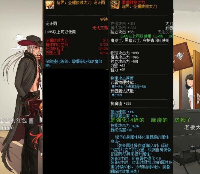 其实这两张图片都能看得出玩家们对于圣耀武器的怀念,这把由荒古遗尘升级而来的武器,陪伴着DNF勇士度过了许多打团的日子。就拿旭旭宝宝来说,那把+18的圣耀救赎太刀,曾经和他一起上火山、下能源,最后为了成全宝哥的耳环,甘愿当做垫子牺牲掉了自己。