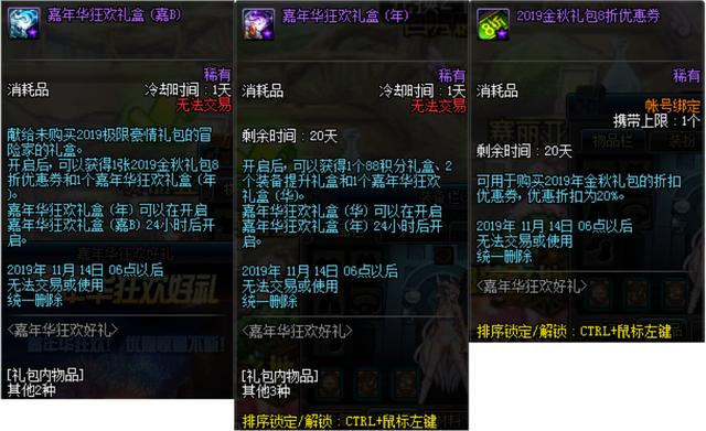 如果没有购买金秋礼包的玩家获得的是B礼盒,打开获得一张8折金秋礼包优惠券,此外同样可以获得嘉年华狂欢礼盒。
