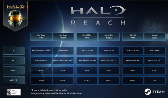 据报道,343 Industries公布了《光环:致远星》的PC的配置需求。里面说到了最低的配置要求Intel i5-3450/AMD FX-6350的CPU以及NVIDIA GTX770/AMD Radeon 480的显卡。