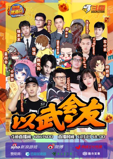 导语:自2017年PUBG公测到现在两年间,绝地战区除了职业选手外,一直都不缺少各路高手大放异彩。今天,由新浪游戏和竞综文化联合主办的微博武道会娱乐赛正式开始了,这次的赛事不仅召集了超多斗鱼PUBG顶级主播进行比武切磋,还首创了很多玩法!11月1日-11月23日每周的周五周六晚18点,斗鱼也会直播这一次的赛事!记得来斗鱼房间6867600观看哦!