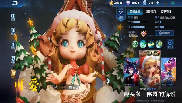女玩家首先辅助英雄蔡文姬是非常多的,主要原因是因为蔡文姬比较可爱,从造型到语音都是非常Q的效果,女玩家特别享受这种萌Q的感觉。