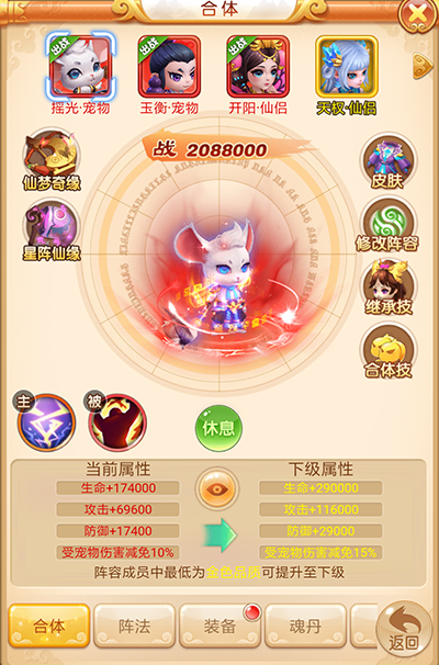 在新作《大圣再临》中,最值得玩家期待的便是游戏独创的合体玩法。喜爱炼妖合宠的你是否已经很久没有体验过“心跳”的感觉了?那合体玩法一定会给你足够的惊喜!不限于传统炼妖玩法只能在两个宠物的基础上进行融合,合体玩法将给予你同时将四个宠物随机合成一个全新单位的机会!合成后的它将获得足够逆天的被动技能加成,还会激活符合条件的合体技能。该系统还配套有合体装备、镶嵌阵符、觉醒技能等更为深度的玩法,等待玩家去自由探索。