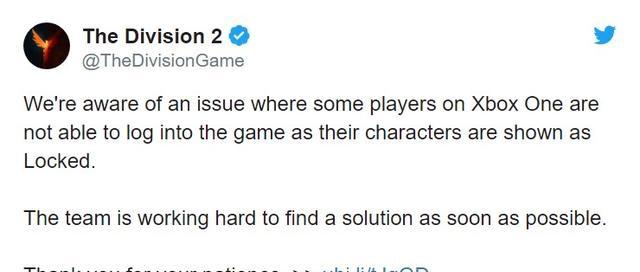 育碧表示已经意识到了这个问题,并且正在调查可能导致该错误的原因,并且还在推特中做出了回复。育碧表示,我们已经知道Xbox One的玩家登陆游戏之后他们的角色显示被锁定,我们的团队正在积极找出解决方法,谢谢大家的耐心等待。