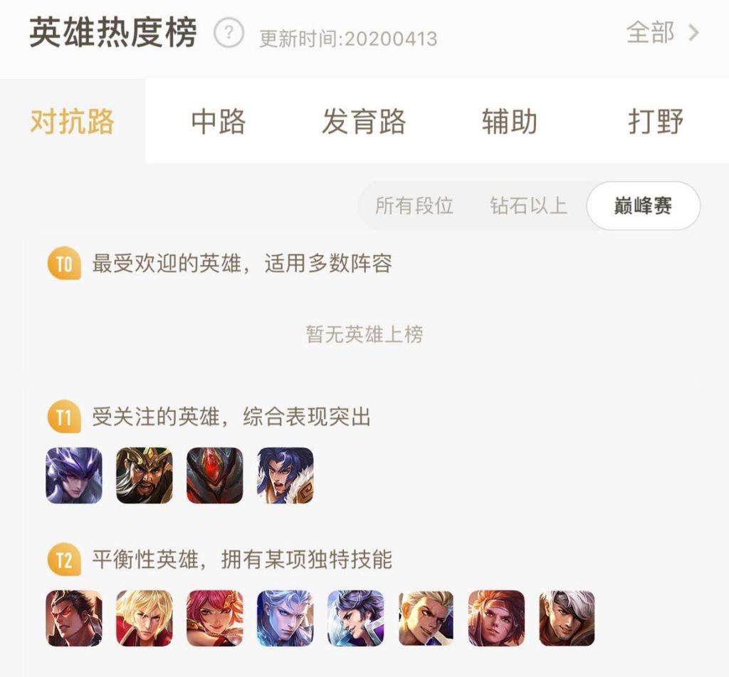 从营地的对抗路胜率榜和英雄梯度榜可以看出,特别是中高端局,诸如白起、项羽、刘邦、夏侯惇等坦克,纷纷有不错的表现,优先级也在逐步提高。