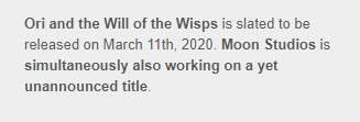 Moon Studios表示:“工作室目前正在寻找资深设计师等人才,一起来加入我们下一次的旅程吧!”工作室在招聘信息中也明确表示:“团队正在开发一款尚未公布的游戏。”