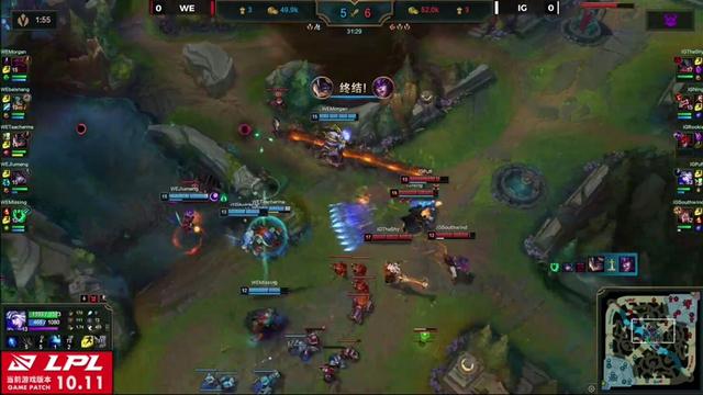 风光君赛后回顾第一场:回顾这两场对战,相信LPL的粉丝们都有点出乎意料,两场都是IG前期优势局却遭到WE翻盘,首先是第一场,IG罕见的选出了四核阵容,包括宁王的野核男枪,前期却是依靠Rookie的院长级别的辛德拉打崩马老师的兰博,拿下小优势,而拿下小优势的IG一改往日风格,不再是那么冲动那么莽,打得相对稳了起来,