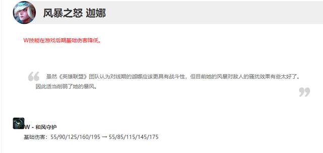 风女的W技能后期伤害下降了20点,由于现在风女基本上都是主W的打法,要降低风女的强度,削弱W技能确实是个办法。