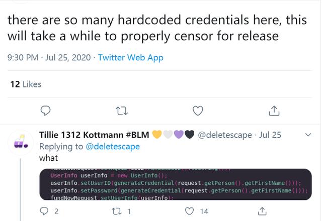 根据安全研究人员 Bank Security 提供的信息,该存储库中大约包含了超过 50 家公司的源码。但有一些文件夹是空的,还有一些存在硬编码凭证——一种创建后门的方式。