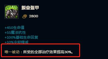 但如果塞拉斯走的是上单位置,可以选择做出振奋铠甲,因为装备被动可以提升治疗量,配合满层征服者以及【弑君突刺】的回复能力,收益直接翻倍。