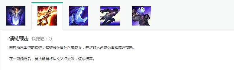 但需要注意,若塞拉斯走上路,【锁链鞭击】则只需加一点,因为受地形约束,上路在资源可争夺时间点上,前期只有峡谷先锋,所以对比经济收益来看,上单塞拉斯仍然以单线击杀为重点。