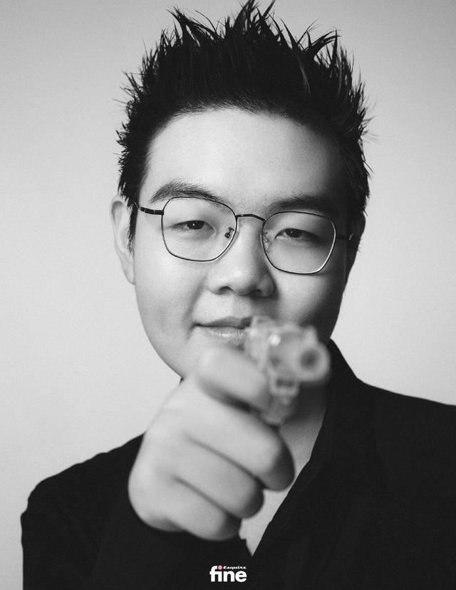 369 像是没心没肺的男孩,圆脸,嗓门大,喜欢说话。在棚里捧着一排养乐多,晃来晃去,四处跟工作人员聊天,一会儿又忙着拿把水枪去跟 knight 打闹。拍片的时候他穿着一条背带裤,手从带子中穿来穿去,他总有自己的乐子。