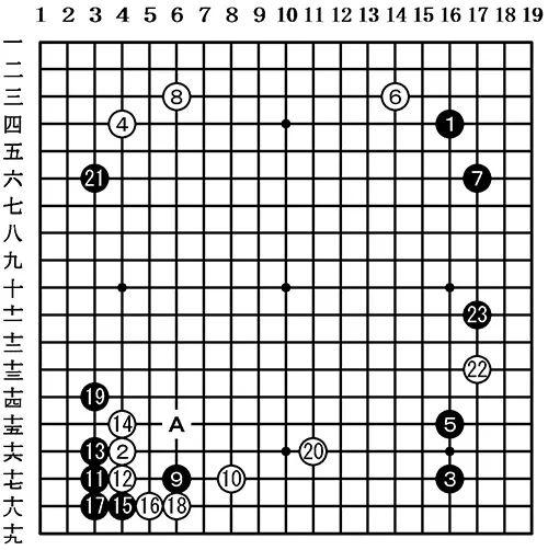 此局先关注左下角的黑11。为了争夺先手,此时黑棋在A位跳出来进攻白10一子是比较自然的下法。实战行至白20,安达利昌率先选择捞空。担任解说的大矢浩一九段表示:“这手棋像是大场面才会选择的手段”。