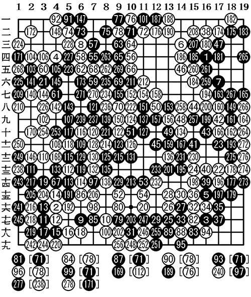 结果:共278手 白2目半胜