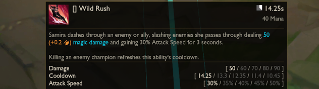 对于拳头这波腹泻式更新我们也是自然是欢迎之至的,毕竟有新英雄就有新玩法,而且这段时间出的英雄也是比较的有意思,不管是玩法还是技能机制都非常的不错,所以不少估计不少玩家也是比较期待这次更新的新英雄又是有着什么不一样的特色玩法。那么下面我们就来看看这个新英雄Samira的一些具体技能介绍吧。