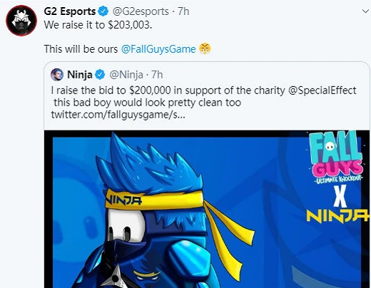 《糖豆人》接下来还准备募捐做慈善,捐款最多的人将获得官方定制的皮肤。一时间社交网络上响应者如云,就连欧美赛区的G2战队都参与进来豪掷了13万美元。在炒热度方面的造诣,《糖豆人》官方拿捏的死死的。