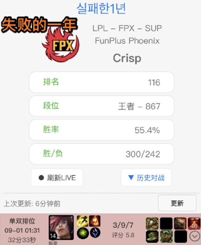 FPX会成为5年来唯一不能归还总冠军奖杯的FPX 时光荏苒,FPX夺冠S9仿佛还只是不久前的事情,然而今年的总决赛也是马上就要到来了。只是作为卫冕冠军,FPX在今年似乎有点力不从心。其实一直到夏季赛中后半段之前,大家并没…