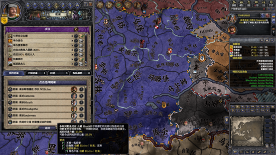 各种随机生成的事件以及到了时间节点会发生的历史事件,增加了游戏的趣味性。比如历史上著名的诺曼底征服、伊比利亚再征服运动、十字军东征等等事件,玩家都能通过游戏的事件系统体验到。