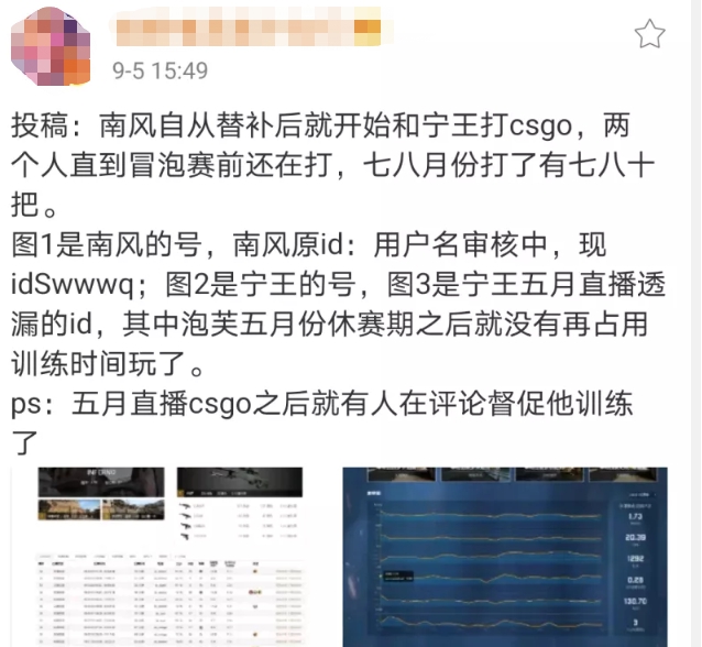 但是这件事情还没过去,宁王又被曝出一个丑闻,那就是在打LGD的前一天晚上没有自己Rank训练,而是跑去和队内辅助南风一起开黑CSGO,而且一打就打了很多局,整个七八月份打了七八十局!估计在冒泡赛前打CS,他也没有多余时间好好训练了。