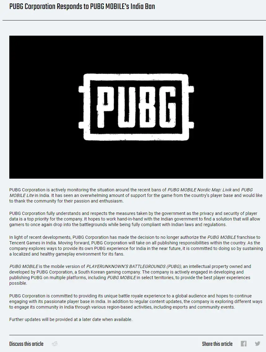 PUBG Corporation在一份新闻稿中称,该公司在密切关注印度市场的《PUBG Mobile Lite》和《Nordic Map:Livik》的运营和监管状况。权衡考虑之后,PUBG Corporation决定不再将当地的特许经营权授予腾讯,且该公司计划自行承担印度市场的所有出版发行责任。这样一来,《PUBG Mobile》和《PUBG Mobile Lite》似乎就能在本质上撇开和腾讯的关系,有望重返印度区的谷歌Play商店和苹果App Store 。