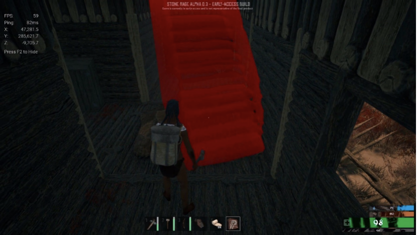 《石器之怒(stone rage)》是一款原始社会题材的多人在线开放世界角色扮演生存游戏。游戏中玩家将扮演一位原始人从一无所有到收集原始材料制备基本的生存物资、采集食物、捕猎再到学习高等级的建造技术,建造属于自己的根据地。游戏目前属于抢先体验阶段,没有中文,但是熟悉生存类游戏玩家应该上手不难。总的来说,游戏的可玩性还是有的,但是现阶段的内容不是十分充足,需要补充丰富的内容还有很多,又加上游戏的玩法和题材都不足以吸引人,前期宣传的匮乏导致游戏的关注度不够,游戏现阶段看上去更像是一款实验性质的作品。