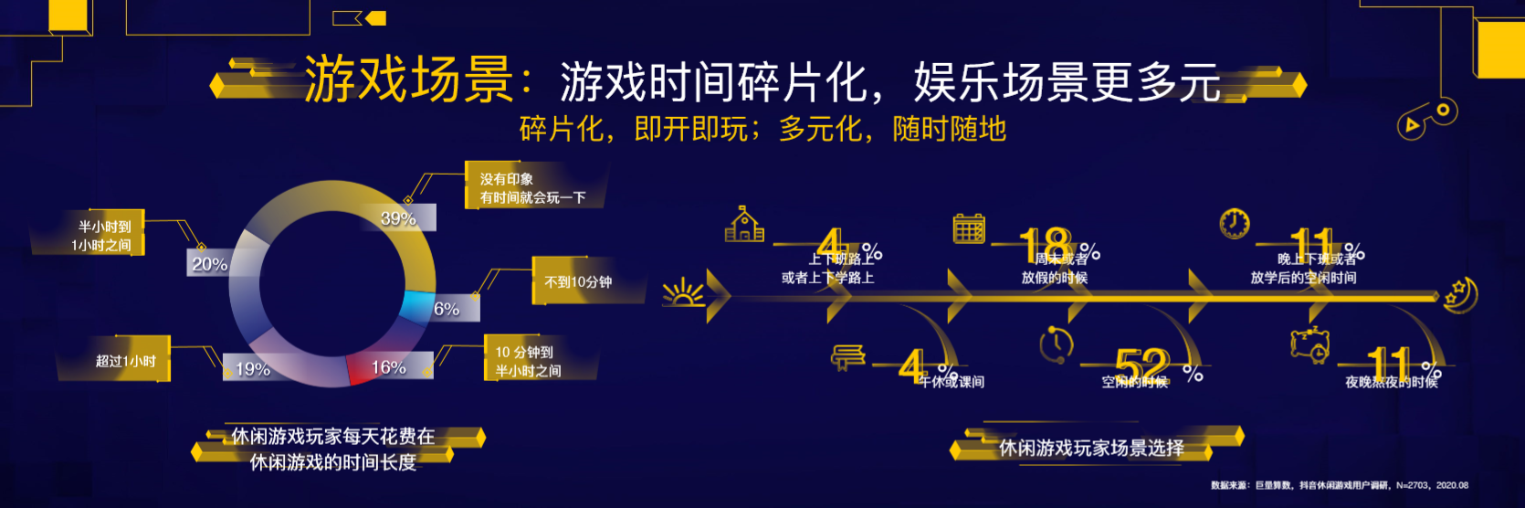 在9月21日的Ohayoo开发者大会上,巨量引擎商业分析负责人林文斌发表了名为《数说休闲游戏“黄金时代”》的演讲。此次演讲从数据角度,分析了休闲游戏发展、 短视频发展、以及休闲游戏用户的行为链路。