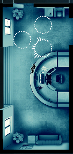 游戏中玩家控制的是一个虚拟的小人,通过控制这个小人游走于不同的房间来窃取对话和信息,看似有一些代入感。但说实话,操纵这个小人完全没有什么必要性,游戏中的地图分为各处不同的房间,玩家需要进入房间才能知道对话内容,而这个小人更多的是对玩家的干扰,玩家不能实时追踪一个角色的一切动向,如果一直追踪一个角色很容易因为这名角色与其他角色对话出现逻辑混乱。个人认为莫不如将这个虚拟的小人去掉,玩家变为点击房间来了解对话内容,也许这样对于玩家更容易理清头绪。
