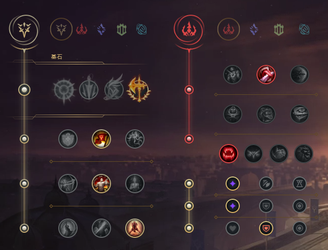 基石符文选择征服者,在无限火力狗熊的连招可以快速叠满征服者,加上不断的W吸血获得强大的回复能力,搭配E技能的互动单挑几乎不会掉血。副系点出贪欲猎手、血之滋味强化狗熊的回复能力。
