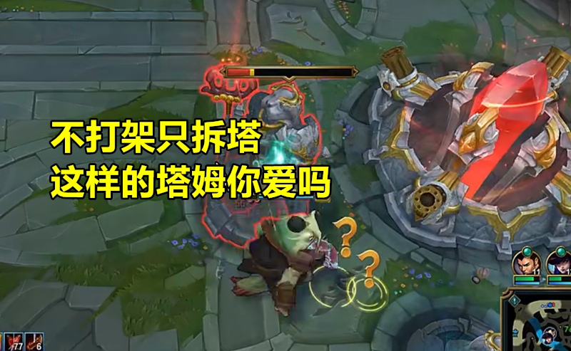 塔姆出了这套装备以后,正面打团刚正面很少遇到对手。即使局势不利,塔姆也完全可以利用大招的传送机制四处带线推塔,尤其在11级以后大招CD进一步缩短,对手就更难招架得住了。由于这套出装下的塔姆攻速奇快,防御塔根本坚持不了多久,堪称"秒推流"塔姆”,敌人那边打得正激烈,结果塔姆这边瞬间推掉一路,可以说玩法极其“分奴”。有玩家表示用这个套路几乎没有输过,对手全都被塔姆恶心到气急败坏的地步。