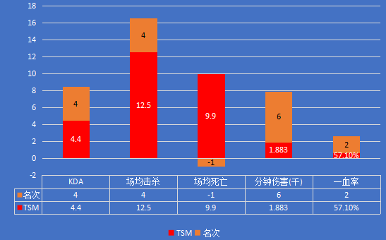 从上面图表我们可以看出,TSM的场均击杀数为12.5,居联赛第4,场均死亡9.9,居联赛倒数第一。从数据表象分析来看,TSM在场均击杀数上处于联赛中上游水准(第4),场均死亡数上处于联赛顶级水准(第1),正常来说,TSM的KDA也应该处于顶级水准,但从KDA来看,明显与预期差了一些。这只能说明,TSM虽然在防守端表现已足够优秀,但在进攻端的表现仍有待提高。