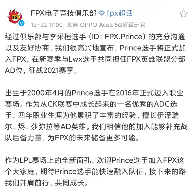 这消息一出让不少FPX粉丝不舍至极,但这份不舍之情刚刚升起就被FPX生生的按了下去,因为FPX又官宣了一个来自韩国的ADC选手。这操作一出顿时点炸了FPX的粉丝,其中让粉丝们生气的有两点。