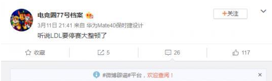 这条微博印证了此前网友的爆料,同时也预示着LDL的形势已经非常危急了,比赛本身的公平性和真实性都已然经不起推敲。