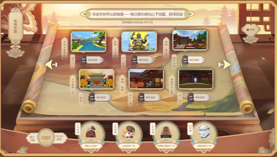 官方为联合敦煌文化馆推出的游戏内各种地图,都是以敦煌主题风格建造,玩家不光可以在网上直观全面的了解敦煌文化,还能通过每日推图获得礼包,各种家具、装扮等等应有尽有。