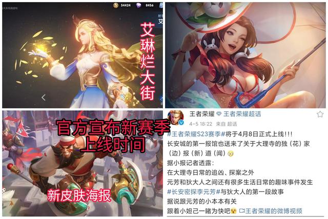 爱生活,爱游戏,大家好,我是阿呆。期待大家的关注,我会在这里分享更多有趣的最新资讯。虽然王者荣耀官方在之前宣布了新赛季上线的几款皮肤,包括重做之后的艾琳官方也宣布会在新赛季更新之后正式上线,可是官方一直都没有说新赛季会在什么时候更新,大家也只是通过活动时间进行猜测,没想到这个猜测既然是对的。