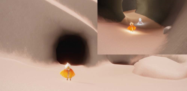 4、前往霞谷的终点,玩家在过图之后向左走既可走进隧道中找到有着火花动作的先祖。