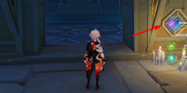 2、我们先触发右侧的升降机机关,然后会出现一层蓝色的屏障。