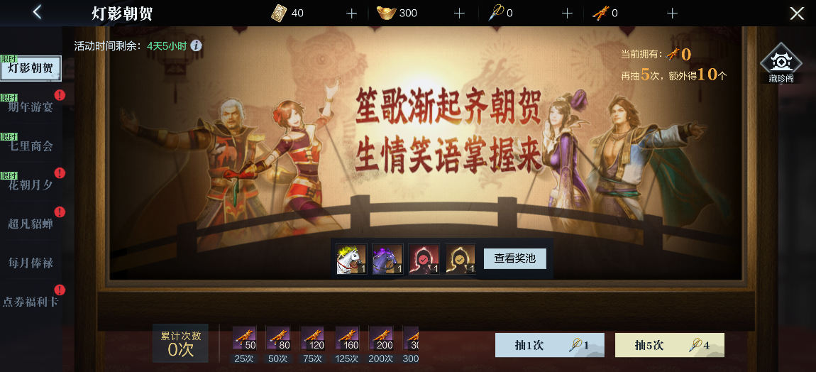2、每抽取5次奖励,可额外获赠牵丝棍*10,牵丝棍可在活动商店处兑换稀有道具。