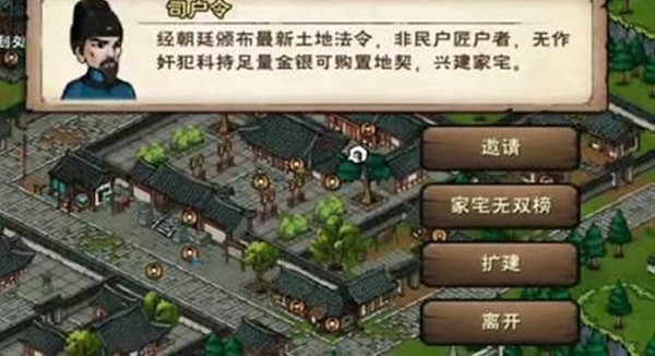 ②扩建:如果选择了小规模的房屋,可以扩建从而提升规模。扩建需要补差价,但银两建筑扩建到元宝建筑时,先前花费的银两不返还。