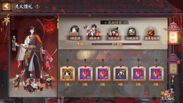 1、活动期间,阴阳师们在战斗中可以获得积分和式神勋章,完成每日任务可解锁流火馈礼奖励,完成成就任务可以解锁累积奖励。