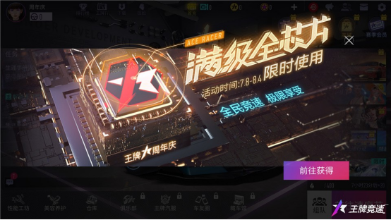 从“芯”出发,当然还要继续竞速,争夺更高的荣耀!王牌速度节组委会将助你一臂之力!7月8日至8月4日,满级芯片将限时对所有车手免费开放,惊人的加成效果将让你的爱车座驾实力拉满,助你攀上此前未曾抵达过的高峰!