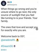 OG俱乐部官推正式宣布ana回归早些时候,OG俱乐部官推正式宣布ana回归。N0tail、Ceb以及JMRLuna也都一起欢迎了ana的归来。当你遇到困难,不知道自己身在何处时,你唯一可祈求的曙光就是你的家人。那些爱你并接纳你…